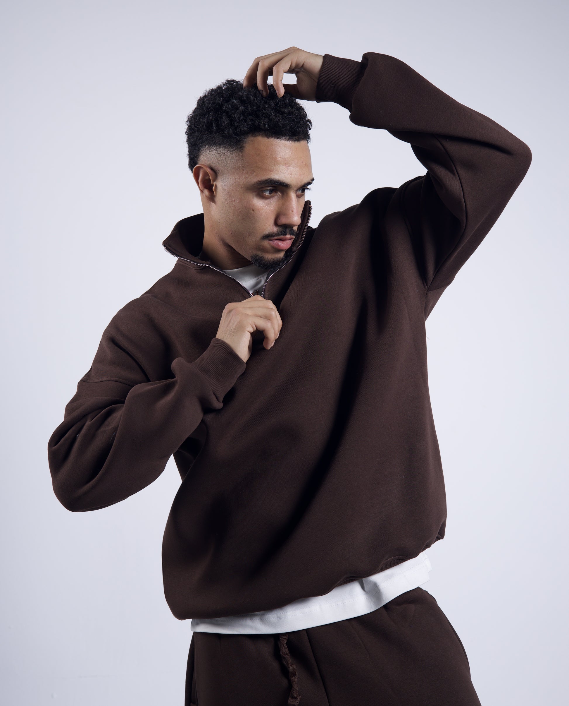 Oversized Half Zipper Brown Sweatshirts